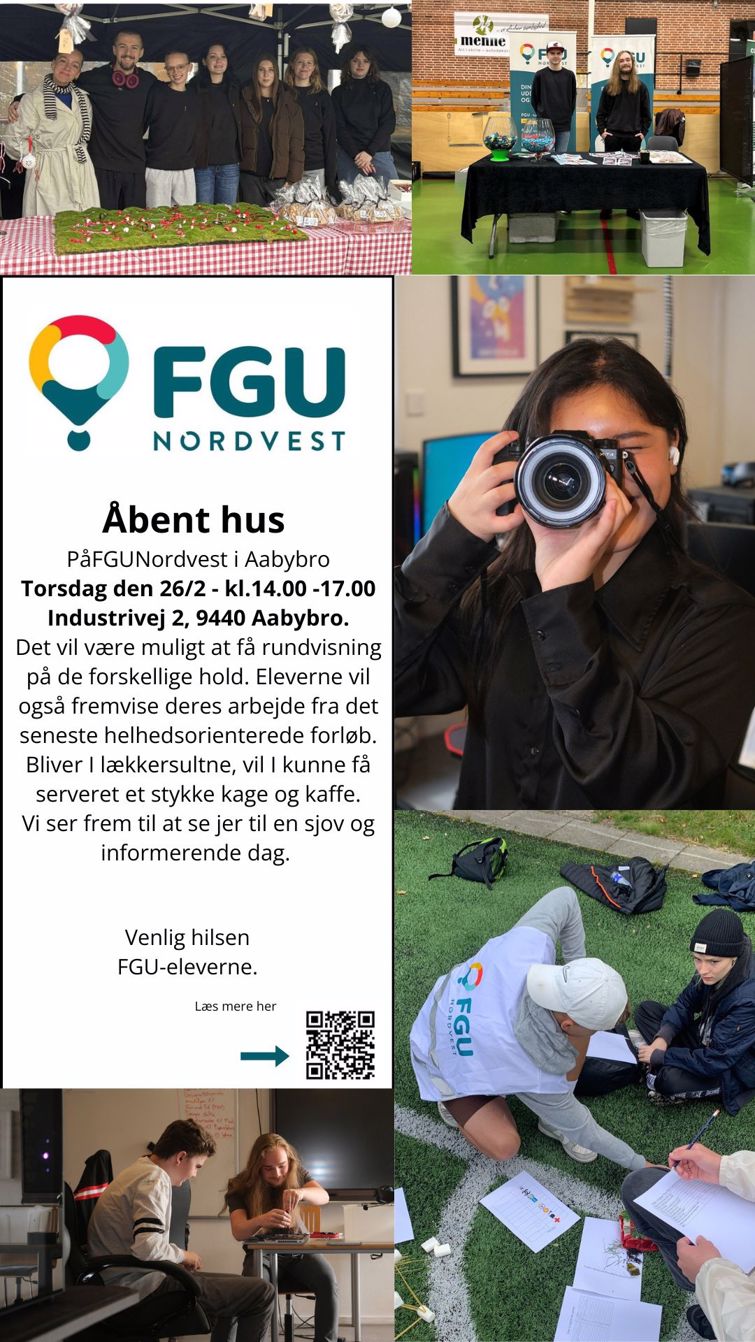 i glæder os til at byde dig velkommen til en sjov og informativ dag, hvor du kan få indblik i, hvordan FGU Nordvest hjælper unge videre med både faglighed og fællesskab.