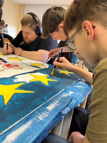 Det fælles Street Art‑projekt blev et tydeligt eksempel på europæisk samarbejde i praksis. Eleverne skulle lytte, forklare, forhandle og blive enige på tværs af sproglige forskelle. Resultatet blev flotte kunstneriske produktioner, som vidner om kommunikation, nye bekendtskaber på tværs af kulturer og stærkt samarbejde.