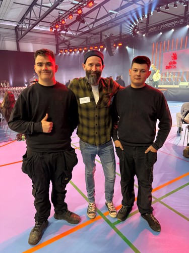 Vi er særligt stolte af Ryan, Marcin, Mathias og Noa, som deltog i svejsekonkurrencen og præsenterede et produkt, de selv havde fremstillet, og pitchede det foran publikum – en præstation, der krævede både faglige kompetencer, samarbejde og mod. Flot klaret!