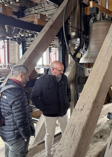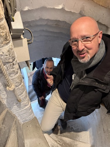 Torsdag eftermiddag blev besøget rundet af på mere uformel vis med en fælles rundvisning i Thisted by. Her fik Ricardo og Nacho blandt andet mulighed for at opleve Thisted Kirke, hvor de – sammen med os – kom helt op i tårnet og hørte levende fortællinger om både kirkens og byens historie formidlet af Thisteds præst, Benne Taekele Holwerda.