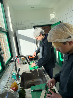 Køkkenet er også et sted, hvor eleverne deler hverdagen sammen. De første retter er allerede lavet, og glæden kan mærkes både i køkkenet og på gangene. Det giver et stærkere fællesskab, når vi igen kan samles om god, hjemmelavet mad.