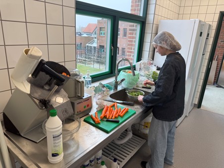 Køkkenet er indrettet, så eleverne nemt kan overskue opgaverne og arbejde i et roligt tempo. Det gør det lettere at udvikle både praktiske færdigheder og forståelse for, hvordan man arbejder med mad i hverdagen.